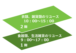 - 2F 衣類、雑貨(エコマーケット)10:00~15:00